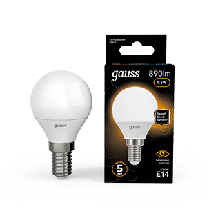 Лампа Gauss LED Шар E14 9.5W 890lm 3000K 1/10/50