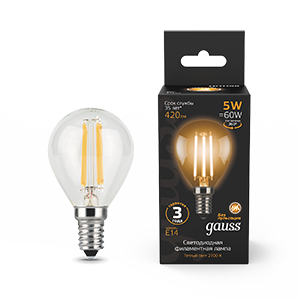Лампа Gauss LED Filament Шар E14 5W 420lm 2700K 1/10/50