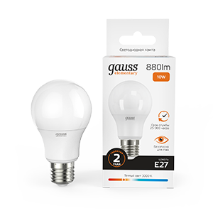 Лампа Gauss LED Elementary, A60, мощность 10W, цоколь E27, цветовая температура 2700K