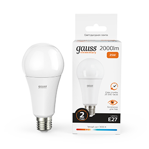 Лампа Gauss LED Elementary, A67, мощность 25W, цоколь E27, цветовая температура 2700K