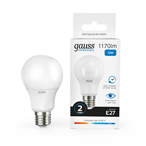 Лампа Gauss LED Elementary, A60, мощность 12W, цоколь E27, цветовая температура 6500K