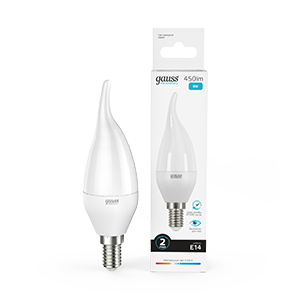 Лампа Gauss LED Elementary, Candle Tailed, мощность 6W, цоколь E14, цветовая температура 4100K