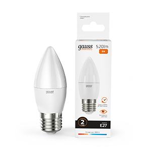 Лампа Gauss LED Elementary, Candle, мощность 8W, цоколь E27, цветовая температура 2700K