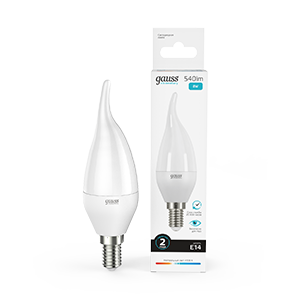 Лампа Gauss LED Elementary, Candle Tailed, мощность 8W,цоколь E14, цветовая температура 4100K