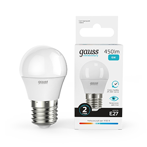 Лампа светодиодная Gauss Elementary Шар 6Вт E27 450lm 4100K