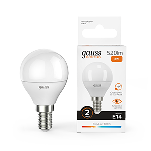 Лампа светодиодная Gauss Elementary Шар 8Вт E14 520lm 3000K (53118)