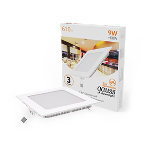 Встраиваемый светильник Gauss ультратонкий квадратный IP20 9Вт, 145х145х22мм, d130х130мм, 3000K 610lm (940111109)