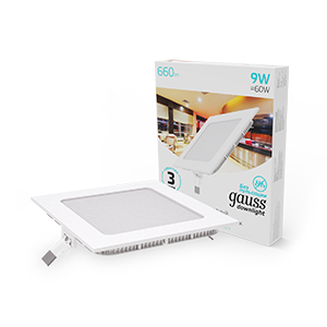 Встраиваемый светильник Gauss ультратонкий квадратный IP20 9Вт, 145х145х22мм, d130х130мм, 4000K 660lm