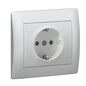 Розетка Legrand Galea Life 771362Алюминий одноместная с заземлением со шторками механизм + лицевая панель Legrand (771362)