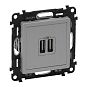 Розетка USB 2-я алюминий VALENA ALLURE///Valena ALLURE.Зарядное устройство с двумя USB-разьемами 240В/5В 1500мА.С лицевой панелью.Алюминий