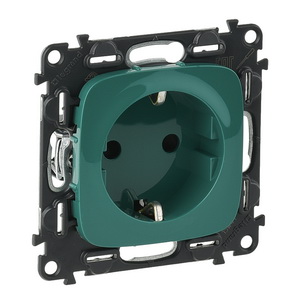 Розетка силовая 2К+З 16А 250В со шторками безвинтовые зажимы с лицевой панелью зеленая Valena ALLURE Legrand