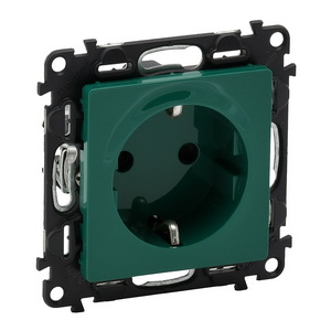 Розетка силовая 2К+З 16А 250В со шторками безвинтовые зажимы с лицевой панелью зеленая Valena LIFE Legrand