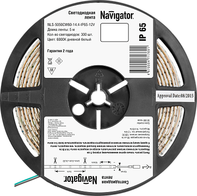 К светотехнике на любом объекте, будь то жилое помещение или коммерческая площадка, предъявляют высокие требования. Необходимо не только продумать конфигурацию всех приборов, безопасную схему подключения, суммарную мощность и нагрузку на сеть, но и учесть требования дизайна, поскольку эстетике сегодня уделяется большое внимание. Лента светодиодная Navigator NLS-5050СW60-14.4-IP65-12V R5 14.4Вт/м уп. 5м (71769) — современное решение, в котором учтены все требования. За надежность отвечают материалы с большим запасом прочности. Все элементы конструкции без проблем выдерживают интенсивную эксплуатацию. Такой вдумчивый подход к деталям является визитной карточкой бренда Navigator.
