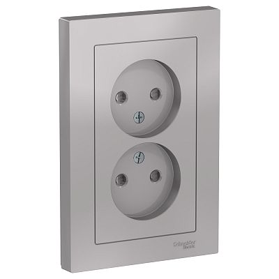 AtlasDesign Алюминий Розетка без заземления двойная, со шторками16А, (в сборе с рамкой) Systeme Electric (Schneider Electric) (ATN000322)