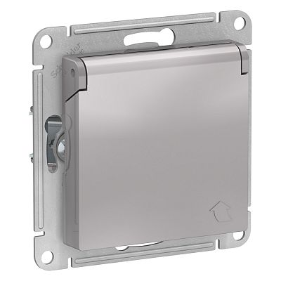 AtlasDesign Алюминий Розетка с заземлением, со шторками с крышкой, 16А Systeme Electric (Schneider Electric) (ATN000346)
