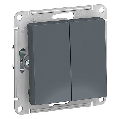 Механизм Schneider Electric AtlasDesign (цвет грифель) выключателя 2-клавишного подходит для сетей 250 В, на ток 10 А. - Двухклавишный выключатель позволяет управлять двумя источниками света с одной точки. - Лицевые детали из качественного ABS-пластика, устойчивого к царапинам и УФ-излучению. - Усиленные прямые монтажные лапки для лучшей фиксации механизма в монтажной коробке.