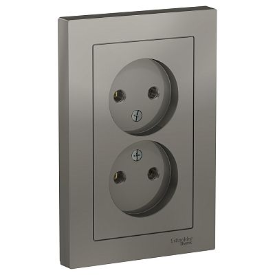Розетка двойная Schneider Electric AtlasDesign (в сборе, цвет сталь) без заземления и без шторок подходит для сетей 250 В, на ток 16 А. - Лицевые детали из качественного ABS-пластика, устойчивого к царапинам и УФ-излучению. - Двойная розетка позволяет подключить два устройства в одном месте. - Усиленные прямые монтажные лапки для лучшей фиксации механизма в монтажной коробке.