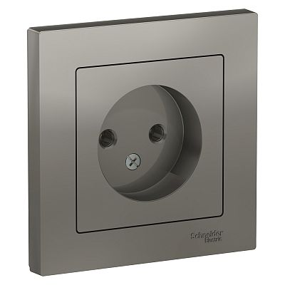 Розетка Schneider Electric AtlasDesign (в сборе, цвет сталь) одинарная без заземления и без шторок подходит для сетей 250 В, на ток 16 А. - Лицевые детали из качественного ABS-пластика, устойчивого к царапинам и УФ-излучению. - Изделие поставляется в комплекте с рамкой того же цвета.