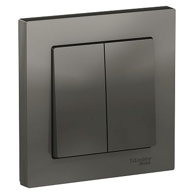AtlasDesign Сталь Выключатель 2 клавишный. сх.5, 10АХ, (в сборе с рамкой) Systeme Electric (Schneider Electric) (ATN000952)