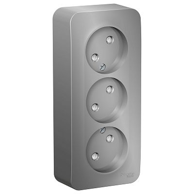 Blanca открытая установка с изолированной пластиной Алюминий Розетка 3 постовая без заземления со шторками 16А Systeme Electric (Schneider Electric) (BLNRA001313)