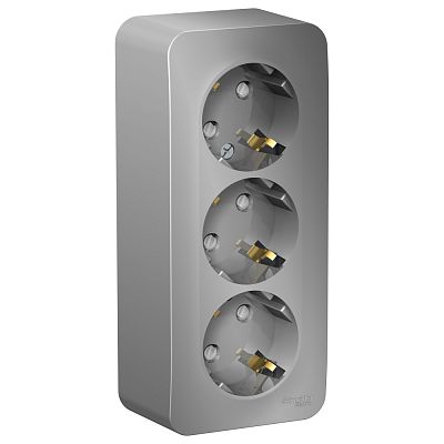 Розетка Schneider Electric BLANCA (алюминий, открытой установки) трехместная, с заземлением, шторками и изолирующей пластиной предназначена для сетей до 250В, на ток до 16А. Трехместная розетка позволяет подключить три устройства в одном месте. Шторки и заземление обеспечивают дополнительную безопасность при косвенном прикосновении.