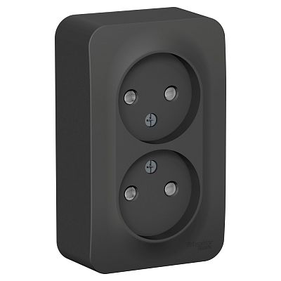 Blanca открытая установка с изолированной пластиной Антрацит Розетка 2-ая без заземления со шторками 16А Systeme Electric (Schneider Electric) (BLNRA001216)