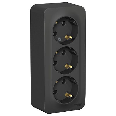 Blanca открытая установка с изолированной пластиной Антрацит Розетка тройная с заземлением 16А Systeme Electric (Schneider Electric)