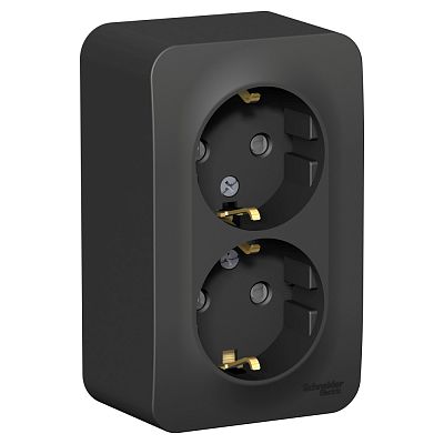 Blanca открытая установка без пластины Антрацит Розетка двойнаяс заземлением со шторками, 16А Systeme Electric (Schneider Electric) (BLNRA011206)
