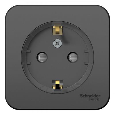 Blanca открытая установка с изолированной пластиной Антрацит Розетка с заземлением со шторками, (тонкая) 16А Systeme Electric (Schneider Electric)