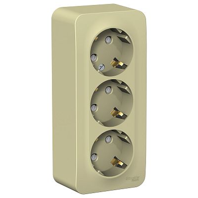 Blanca открытая установка с изолированной пластиной Бежевый Розетка тройная с заземляющим контактом со шторками 16А Systeme Electric (Schneider Electric)