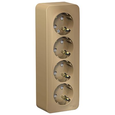 Blanca открытая установка с изолированной пластиной Титан Розетка 4-ая с заземлением со шторками 16А Systeme Electric (Schneider Electric) (BLNRA011414)