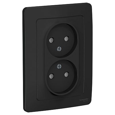 Blanca скрытая установка Антрацит Розетка двойная без заземления со шторками, 16А Systeme Electric (Schneider Electric) (BLNRS000126)