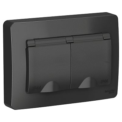 Blanca скрытая установка Антрацит Розетка двойная с заземлением IP44 со шторками, 16А Systeme Electric (Schneider Electric)
