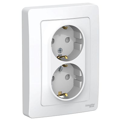 Blanca скрытая установка Белый Розетка двойная с заземлением со шторками, 16А Systeme Electric (Schneider Electric)
