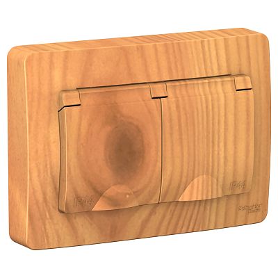 Blanca скрытая установка Ясень Розетка двойная с заземлением IP44 со шторками, 16А Systeme Electric (Schneider Electric)