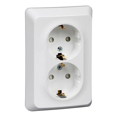 Двухклавишная розетка ХИТ открытой установки с изолирующей пластиной, с заземлением, белая, 16А, Schneider Electric RA16-238I-B Systeme Electric (Schneider Electric) Двухклавишная розетка ХИТ открытой установки с изолирующей пластиной, с заземлением, белая, 16А, Schneider Electric RA16-238I-B Systeme Electric (Schneider Electric)