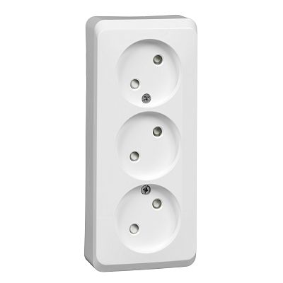 ЭТЮД открытая установка Белый Розетка тройная без заземления со шторками 16А 250B Systeme Electric (Schneider Electric) (PA16-010B)