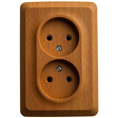 Розетка Schneider Electric ЭТЮД (бук, открытой установки) двухместная угловая, без шторок и заземления предназначена для применения в сетях до 250В, на ток до 16А. Двухместная розетка позволяет подключить два устройства в одном месте. Ее конструкция позволяет установить розетку в угол помещения. Изделия цвета Бук обладают уникальным рисунком, напоминающим древесный сруб. Сделано в России.