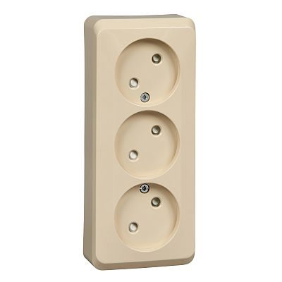 ЭТЮД открытая установка Кремовый Розетка тройная без заземления со шторками 16А 250B Systeme Electric (Schneider Electric)