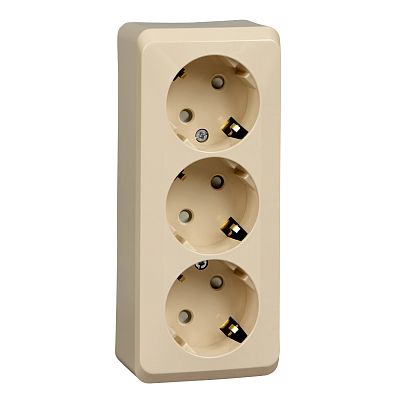 ЭТЮД открытая установка Кремовый Розетка тройная с заземлением со шторками 16А 250B Systeme Electric (Schneider Electric)