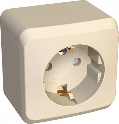 ЭТЮД открытая установка Кремовый Розетка одинарная с заземлением со шторками Systeme Electric (Schneider Electric)