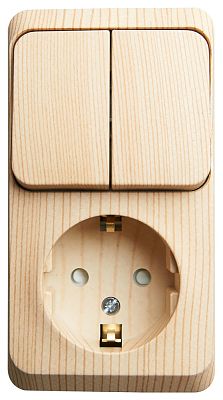 ЭТЮД открытая установка Сосна Блок: Розетка с заземлением со шторками + Выключатель 2 клавишный Systeme Electric (Schneider Electric) (BPA16-202D)