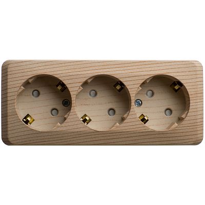 ЭТЮД открытая установка Сосна Розетка тройная с заземлением со шторками 16А 250B Systeme Electric (Schneider Electric) (PA16-012D)