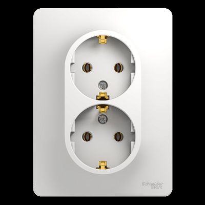Schneider Electric Glossa GSL000124 – двухместная модель белого цвета в сборе с рамкой для подключения техники любого типа. Монтажные лапки плотно прилегают к корпусу механизма, за счет чего монтаж выполняется быстро. Благодаря симметричным пазам на стальном основании можно легко выравнивать розетки при установке сразу нескольких в один ряд. Для изготовления используется термостойкий пластик с эффектом керамики. Данный вариант с заземлением, что повышает безопасность во время эксплуатации.