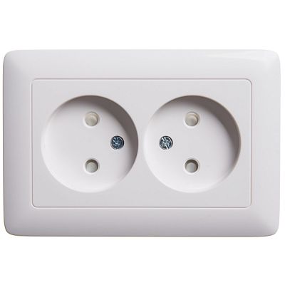 ХИТ скрытая установка Белый Розетка двойная без заземления со шторками, 16А Systeme Electric (Schneider Electric)