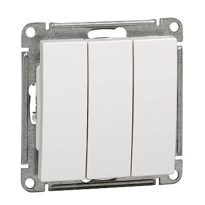 Механизм Schneider Electric W59 (цвет белый) выключателя 3-клавишного подходит для сетей 250 В, на ток до 10 А. - Трёхклавишный выключатель позволяет управлять тремя источниками света с одной точки. - Серебряные контактные группы выключателей обеспечивают надёжный электрический контакт и пожаробезопасность. - Корпус изделия выполнен из высококачественного ABS-пластика.