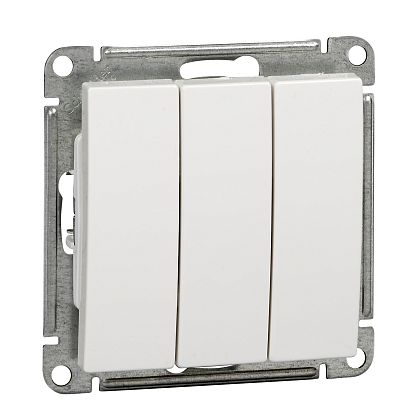 Механизм Schneider Electric W59 (цвет белый) выключателя 3-клавишного подходит для сетей 250 В, на ток до 16 А. - Трёхклавишный выключатель позволяет управлять тремя источниками света с одной точки. - Серебряные контактные группы выключателей обеспечивают надёжный электрический контакт и пожаробезопасность. - Корпус изделия выполнен из высококачественного ABS-пластика.