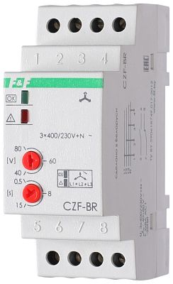 Реле контроля и наличия, чередования фаз предназначено для защиты электродвигателей и электроустановок, питаемых от трехфазной сети в случаях: отсутствия хотя бы одной из фаз, асимметрии напряжения, нарушения чередования фаз. Регулируемые асимметрия и время отключения,2 модуля, монтаж на DIN-рейке 3х400/230+N 2х8А 1NO, 1NC IP20 Евроавтоматика ФиФ