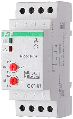 Реле контроля наличия и чередования фаз предназначено для защиты электродвигателей и электроустановок, питаемых от трехфазной сети в случаях: отсутствия хотя бы одной из фаз, асимметрии напряжения, повышения напряжения более 260 В, снижения напряжения ниже 160 В, нарушения чередования фаз. Регулируемые асимметрия и время отключения, контроль верхнего и нижнего значений напряжения, 2 модуля, монтаж на DIN-рейке 3х400/230+N 2х8А 1NO, 1NC IP20 Евроавтоматика ФиФ