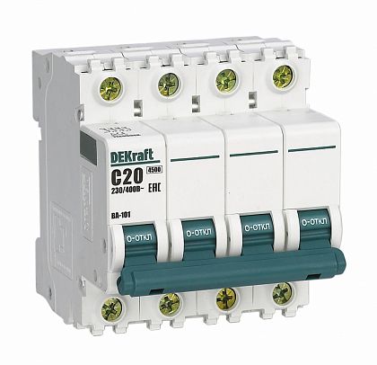 Автоматический выключатель 4Р 1А х-ка B ВА-101 4,5кА DEKraft Автоматический выключатель 4Р 1А х-ка B ВА-101 4,5кА DEKraft